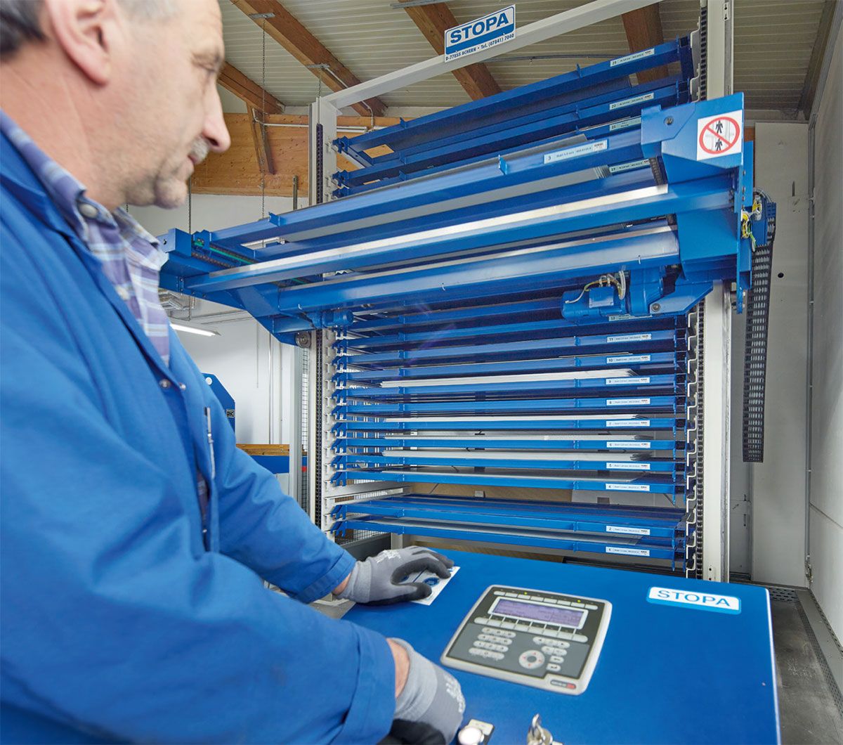 Baschnagel points to the STOPA ECO. “The 23 storage spaces are reserved for specific materials. However, we do not store any additional sheets until we have used up the sheets on the flat pallets. This is because the batches can vary.”