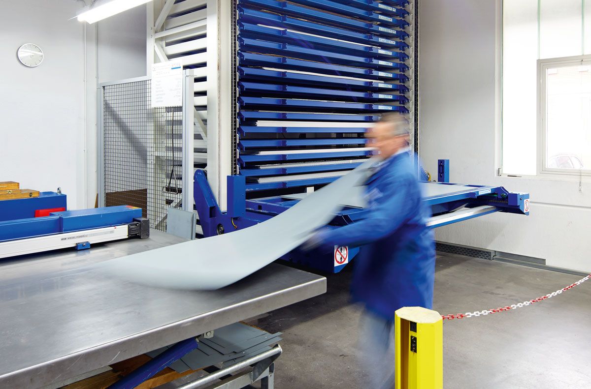 ATMOS uses the STOPA ECO in a single shift. The system achieves an availability of almost 100 percent and handles around two tons of material per month. The operator expects a payback period of four years. “However, the decisive factor for the investment was a sustainable reduction in physical labor”, emphasizes Baschnagel. “Our plant operators benefit from this, and they can also achieve more in the same time. We became aware of sheet metal storage systems at a trade fair. We later spoke to a number of companies and ultimately chose STOPA because this company was the most flexible and offered a solution that was precisely tailored to our limited space. Other manufacturers did not want to or could not offer this form of customization.”